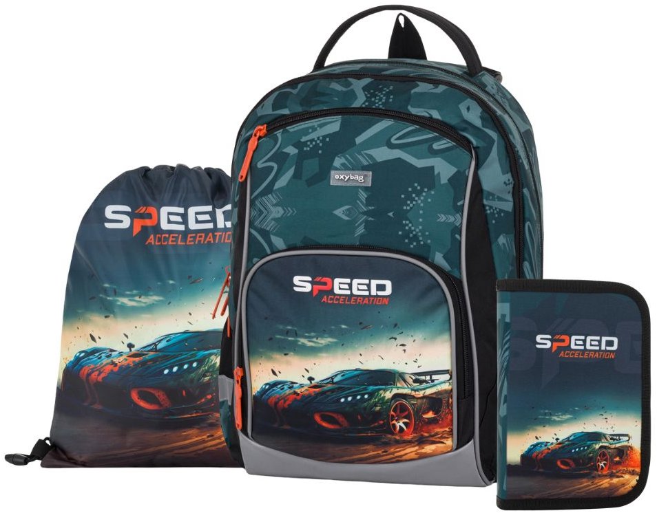 Školská súprava vhodná pre chlapcov, obsahom školskej súpravy batoh, nevybavený peračník a vrecko na topánky/cvičebný úbor, vhodné od 6 rokov Školská súprava OXYBAG Oxy Go Auto, 3-dielny je zostavená z najpraktickejších vecí, ktoré sa hodí pre každého malého školáka na prvé školské roky. Školský batoh od začiatku vzbudí záujem nielen u detí