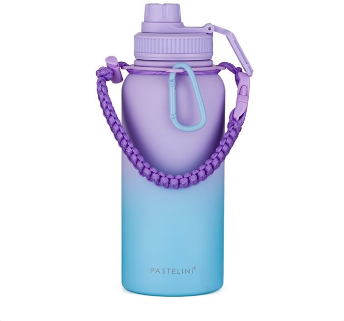 Termoska – nerezová termoska OXY GRiP 950 ml Fialová dvojitá stěna, udrží teplé až 12 h a studené až 20 h, poutko s karabinou, nevhodná do myčky a pro sycené nápoje, 90 × 90 × 250 mm