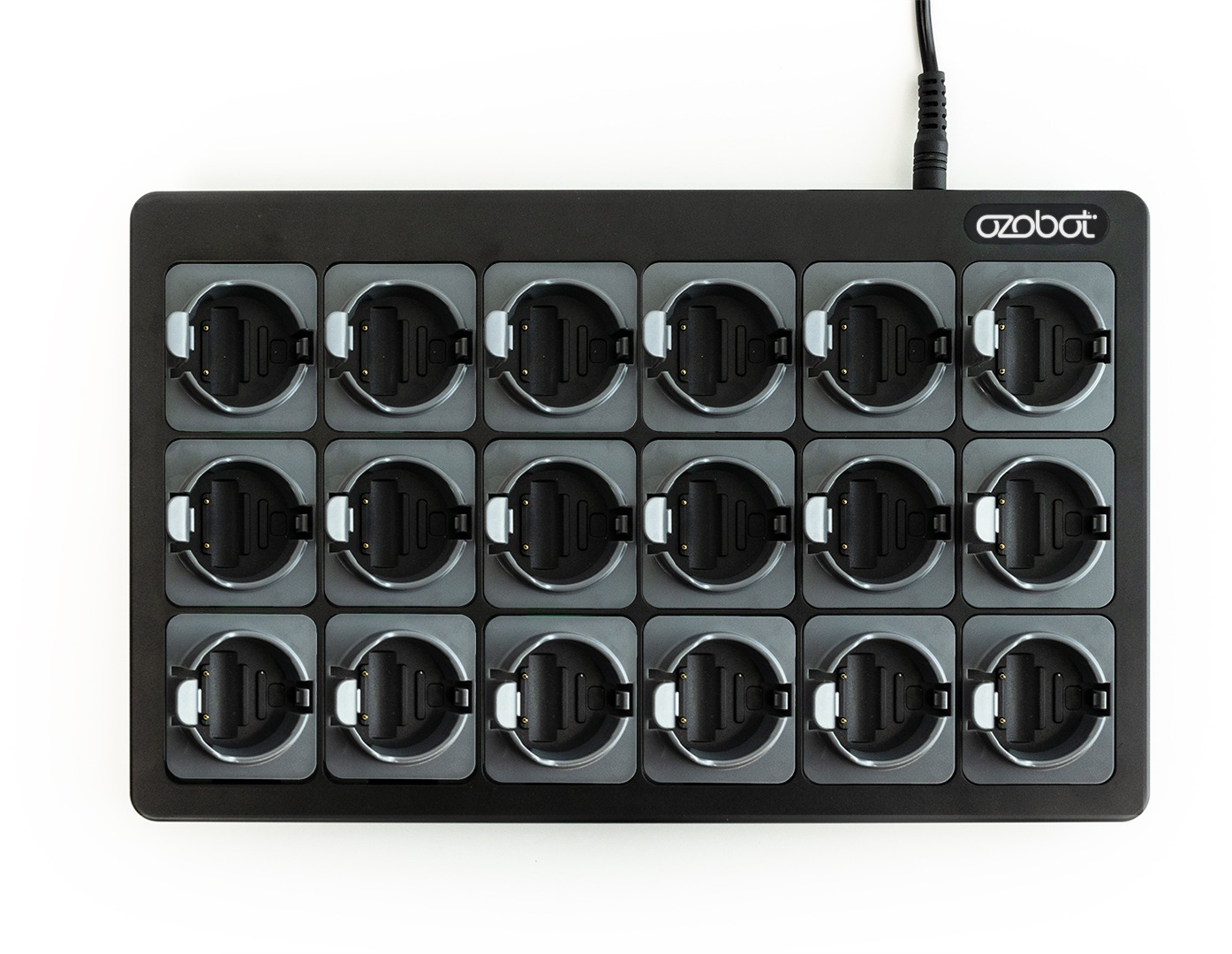 Príslušenstvo pre robot – nabíjacia stanica na Bit+ Bezdrôtová nabíjacia stanica pre Bit+ je profesionálnym riešením na hromadné a pohodlné nabíjanie robotov Bit+ bez nutnosti pripájania káblov. Umožňuje bezdrôtovo nabíjať až 12 robotov súčasne a výraz