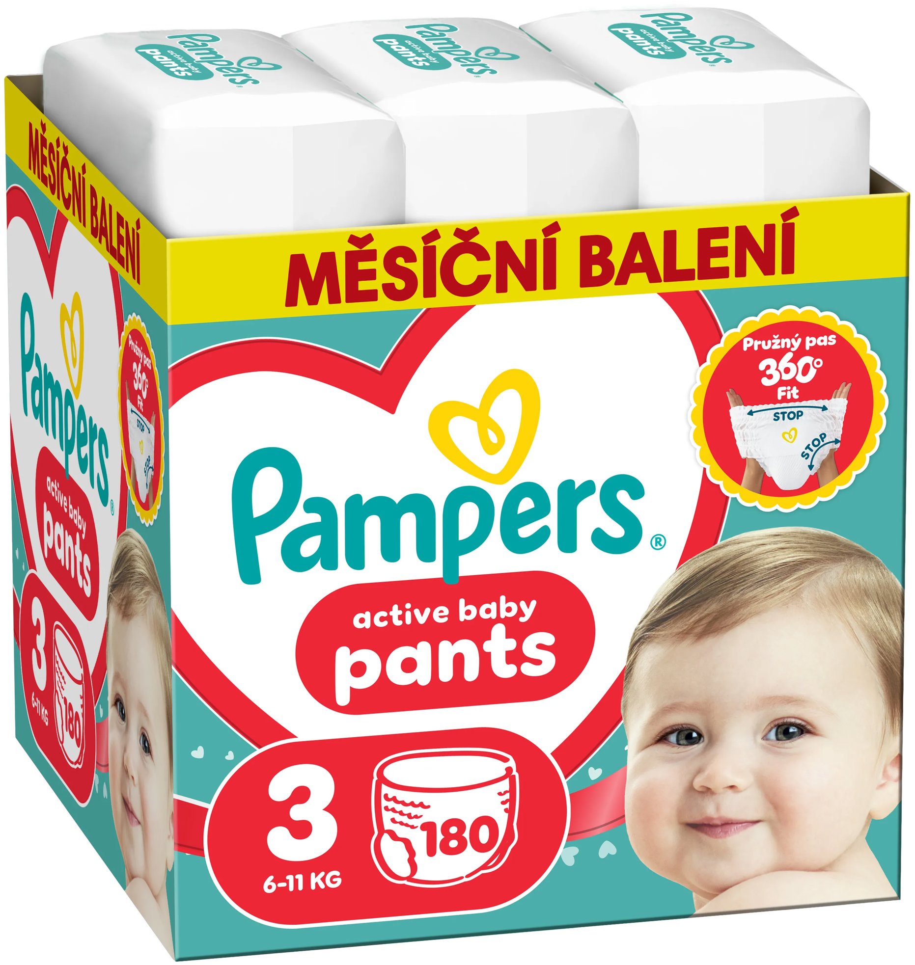 Plienkové nohavičky – jednorazové, veľkosť 3, pre deti od 6 do 11 kg, indikátor vlhkosti, anatomické absorpčné jadro, predchádzajú vzniku zaparenín, elastický pás, naťahovacie, motív so zvieratkami, v balení 180 ks Plienkové nohavičky PAMPERS PantsPlienkové nohavičky PAMPERS Pants veľ. 3 sú vhodné pre deti od 6 do 11 kg a poskytujú spoľahlivú ochranu pri každodennom pohybe aj počas noci. Pružný pás 360° sa prisp