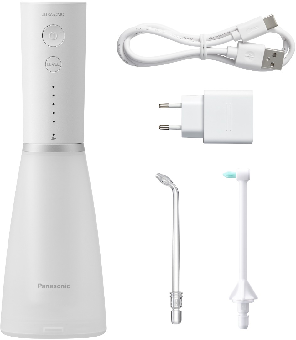 Elektrická ústna sprcha – vyhotovenie: cestovné, pre strojček na zuby, 5 programov, dýzy ortodontické, waterjet a ultrasonické, 2 dýzy v balení, objem nádržky 200 ml, regulácia intenzity prúdu vody, 5 stupňov intenzity, režim mikrobublinkový, 1600 impulzov za minútu, sieťové napájanie, doba nabíjania 1 h, nabíjací kábel v balení, rozmery 21,2 × 6,8 × 8,1 cm (V׊×H), hmotnosť 0,275 kg Profesionálna starostlivosť o ústnu dutinu v pohodlí domovaElektrická ústna sprcha Panasonic EW-DJ86-W503 prináša pokročilé technológie pre maximálne efektívne a šetrné čistenie zubov aj medzizubných
