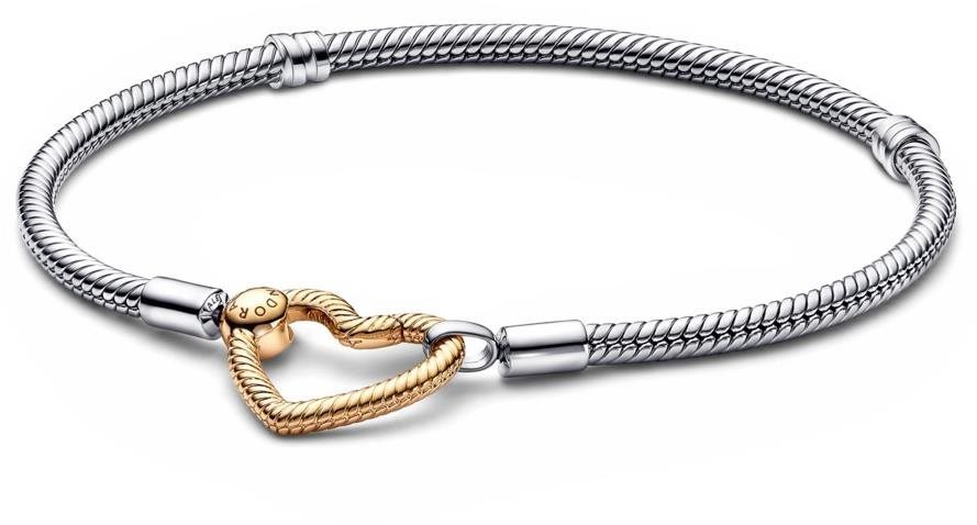 Náramok – dámsky, pevný, retiazkový, materiál všeobecný kov (bižutérny) a striebro, rýdzosť: striebro 925/1000, povrchová úprava pozlátenie, hmotnosť šperku 13,5 g, bez osadenia, dĺžka 21 cm Dychtíte po novom náramku, ktorým možno zaujať v spoločnosti? PANDORA náramok dokonale skrášli všetky ženy. Materiálom náramku je všeobecný kov (bižutérny) a striebro. Strieborný náramok pôsobí veľmi