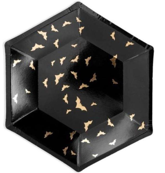 Súprava tanierov – taniere, čierna farba, atypický tvar, zvierací a halloweensky motív, 6 kusov v súprave Hlavné vlastnosti sady tanierov Papierové taniere – netopiery – halloween – 20 cm – 6 ks Súprava tanierov PARTYDECO sa bude perfektne hodiť na záhradnú párty Výrobným materiálom tanierov je papier Bol