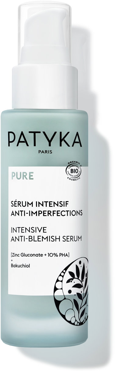 Pleťové sérum – denný a nočný variant, účinok zmatňujúci a antiseptický, BIO, luxusné, s kyselinou hyalurónovou, na citlivú, mastnú a zmiešanú pleť, objem 30 ml PATYKA Anti-blemish Intensive Serum je intenzivní pleťové sérum určené k redukci nedokonalostí a zlepšení vzhledu problematické pleti. Jeho hlavní složkou je kyselina salicylová, která