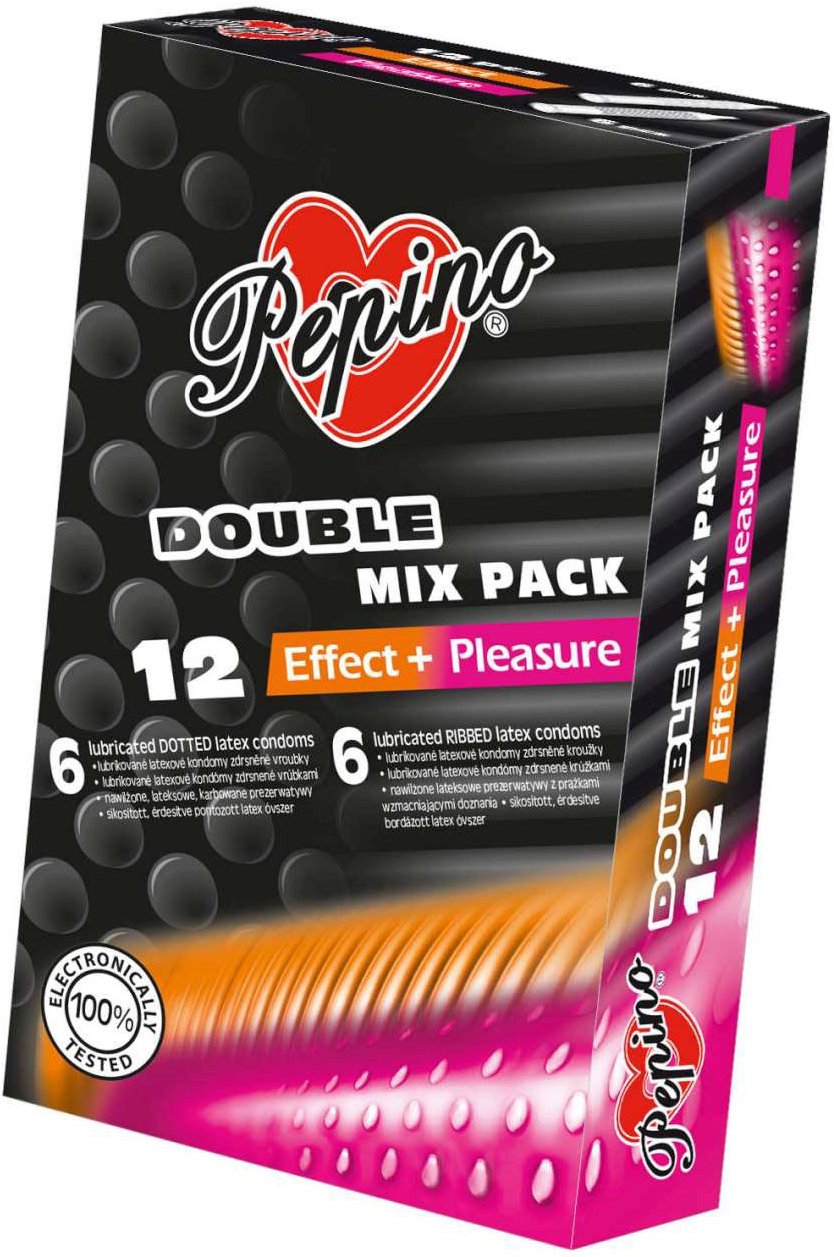 Kondómy – s vrúbkovaním, latexové, bežná lubrikácia, mix druhov, veľkosť 52 × 190 mm (Š×D), hrúbka 0,07 mm, 12 kusov v balení