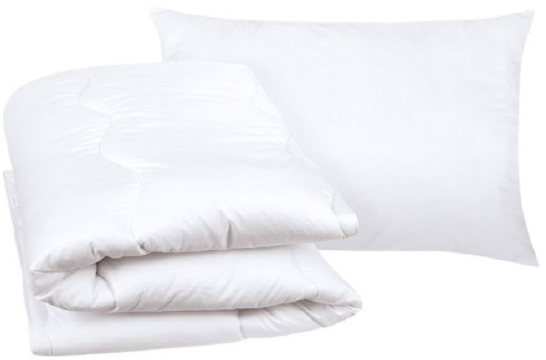 Posteľná súprava – vrchný materiál polyester, materiál výplne duté vlákno, biela farba, 2 kusy v balení, vankúš: obdĺžnikový, antialergénny a do postieľky, rozmery 60 × 40 cm (D׊), prikrývka: antialergénna a do postieľky, celoročná, rozmery…