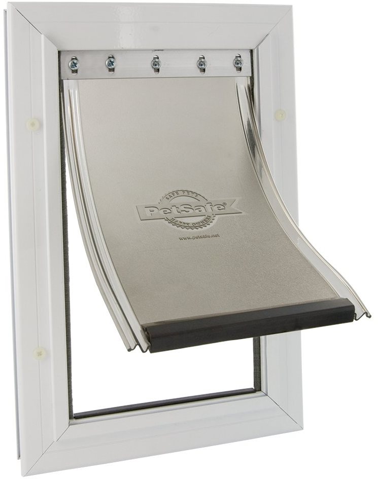 Dvierka pre psa a mačku – manuálne, vhodné pre stredne veľké plemená, rozmery 40 × 27,76 cm (V׊), veľkosť otvoru 34,8 × 22,5 cm (V׊), ľahko udržiavateľné, max. hmotnosť zvieraťa 18 kg, inštalácia do dreva, kovu a PVC, umiestnenie do steny a dverí, na vstup aj výstup, materiál kov a plast, biela a transparentná farba Dvierka pre psy a mačky PetSafe Staywell 620 sú kompaktným a odolným riešením pre stredne veľké plemená psov a väčšie mačky s hmotnosťou do 18 kg. Hliníkový rám v kombinácii s plastovým priehľadným fl