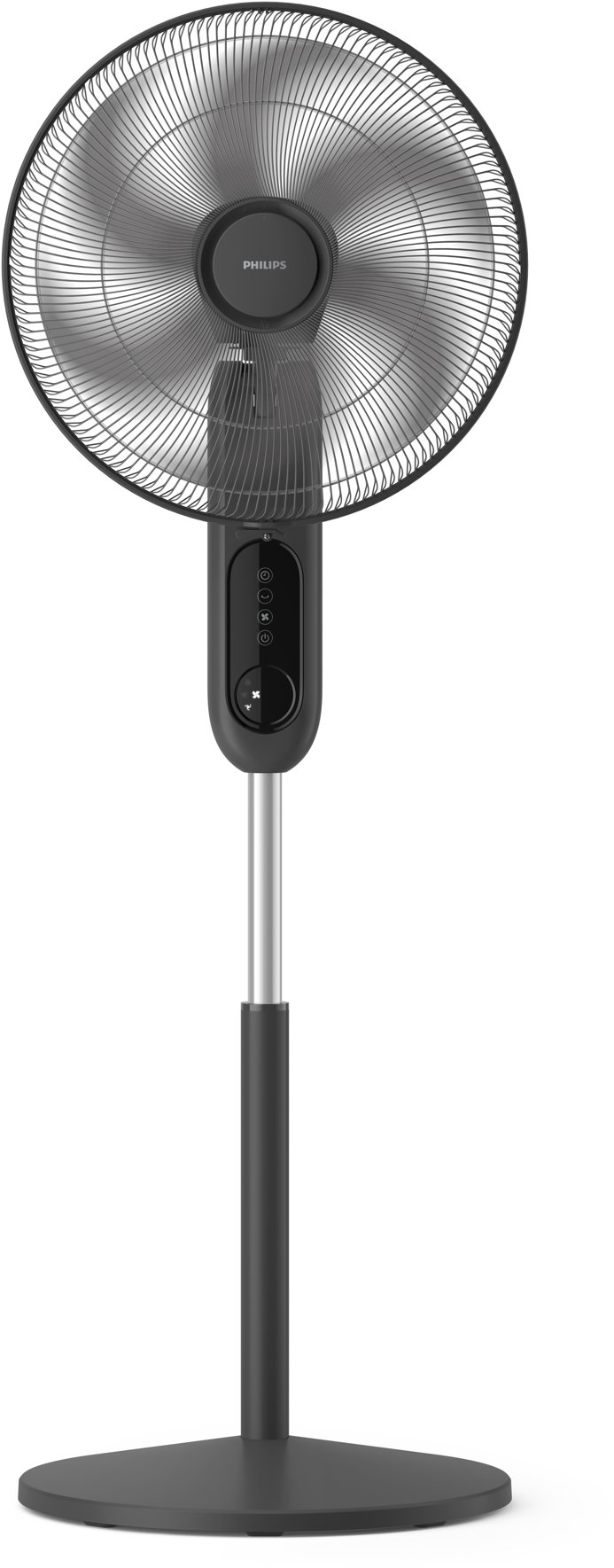 Ventilátor – stojanový, vrtuľový, nastaviteľný uhol sklonu, hlučnosť 43 dB, s časovačom, diaľkové ovládanie súčasťou balenia, nastaviteľná výška od 11,2 do 13,1 cm, rozmery 43 × 45 cm (Š×H), príkon 47 W, 3 rýchlosti, vertikálna oscilácia 30°, horizontálna oscilácia 80°, diaľkové ovládanie, čierna farba, hmotnosť 6,6 kg Nielen v priebehu horúcich letných dní, kedy je márna každá snaha dokonale vyvetrať doma alebo v kancelárii, vám túto starosť pomôže vyriešiť stojanový ventilátor Philips. Jeho príkon 47 W v okamihu u
