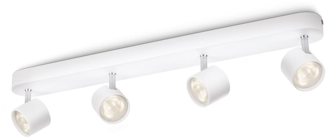 Bodové svetlo – LED, na strop, energetická trieda F, zdroj svetla je integrovaný, 4 žiarovky, svetelný tok 2000 lm, teplá biela, index podania farieb CRI 45 Ra, stmievanie, biela farba, rozmery 8,2 × 6 × 56 cm (V׊×D) Bodové svetlo Philips vám pomôže osvetliť rozličné časti miestnosti. Bodové svietidlo má integrované LED, a tak šetrí váš zrak a tiež je energeticky úspornejšie ako bežné žiarovky. Farebná teplota sve
