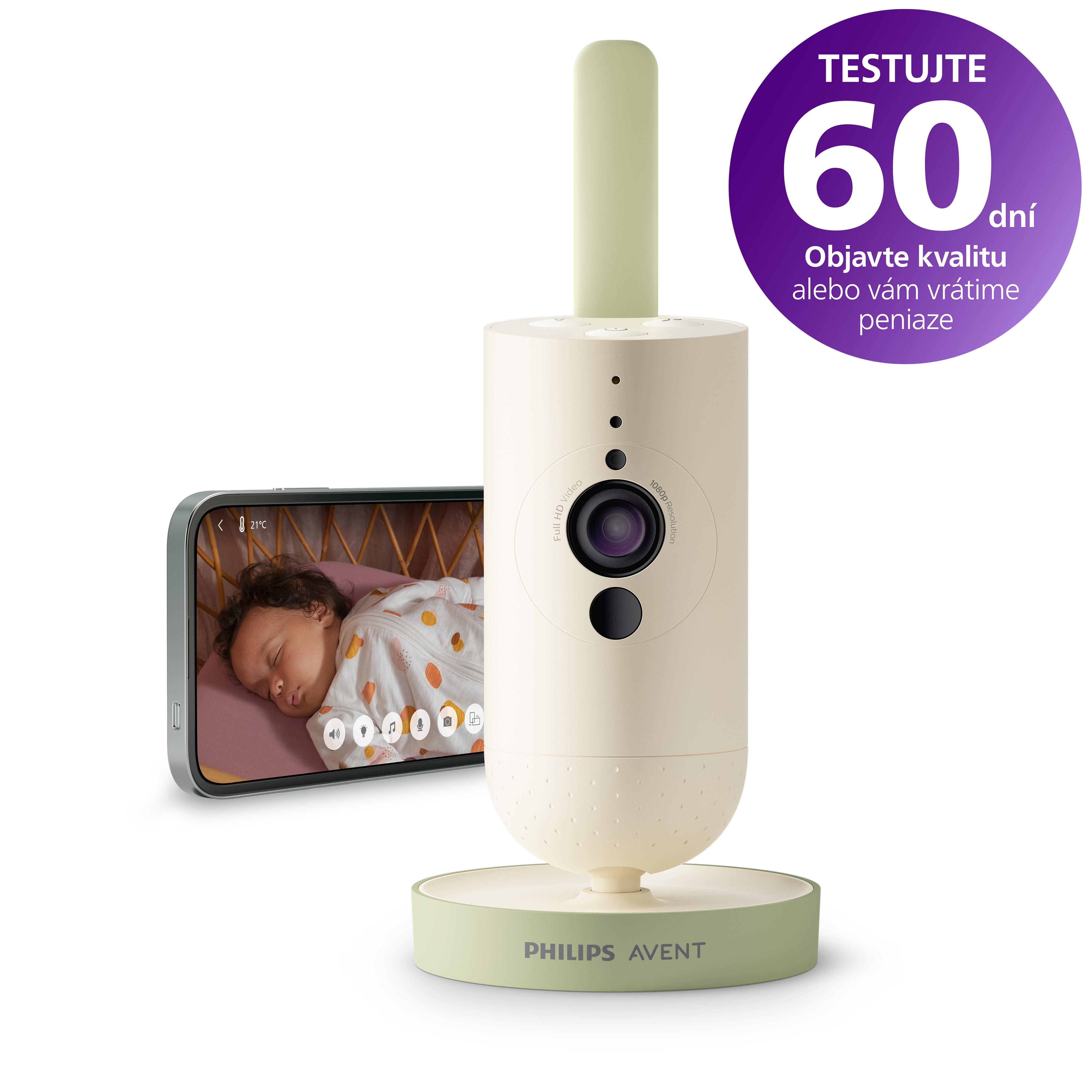 Detská pestúnka – detská jednotka (kamera), s prenosom obrazu (video), prenos zvuku prebieha cez internet, nočné videnie a uspávací režim (uspávanky, rozprávky alebo projekcia), detskú jednotku napája sieť (230 V) Inteligentná detská kameraSCD643/26O dianí v detskej izbičke budete mať perfektný prehľad. S inteligentnou detskou kamerou budete môcť počúvať zvuky a sledovať obraz priamo zo svojho mobilného telefón