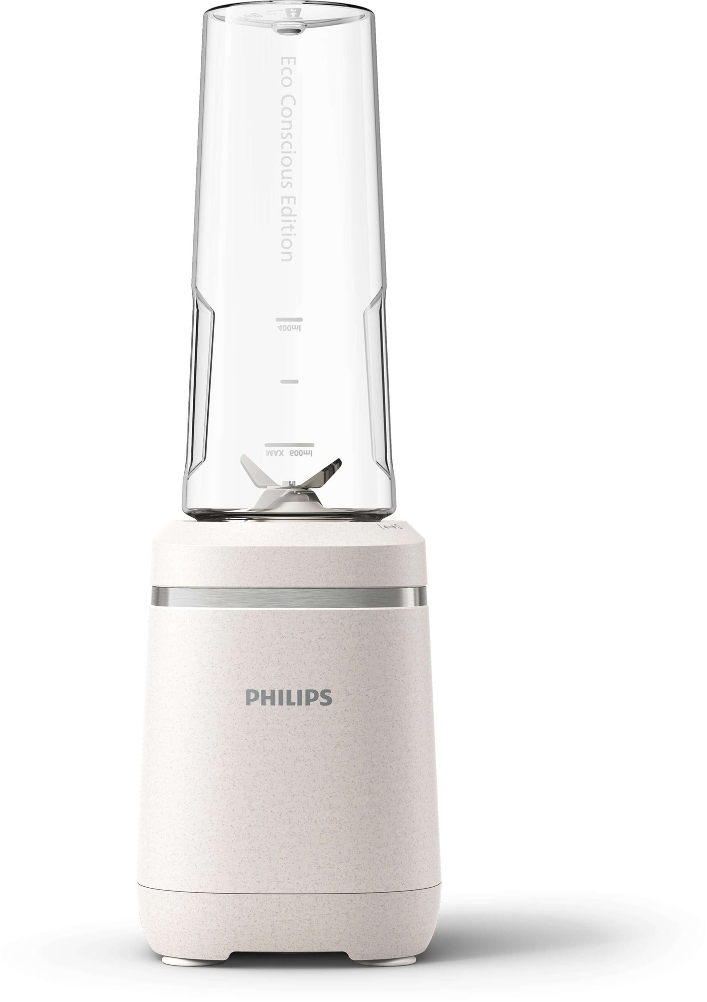 Stolný mixér – príkon 350 W, mixovanie bez prístupu vzduchu, vhodný na polievky, smoothie, drvenie ľadu a príkrmy, prenosná fľaša, sekáčik a mixovacia nádoba súčasťou, 1 nádoba v balení, objem mixovacej nádoby 0,6 l, materiál nádoby tritan Philips Eco Conscious EditionStolný mixér série 5000HR2500/00Stolný mixér Philips Eco Conscious Edition – navrhnutý pre lepšiu planétuVychutnajte si dokonale jemné smoothie spoločne s úžasným pocitom