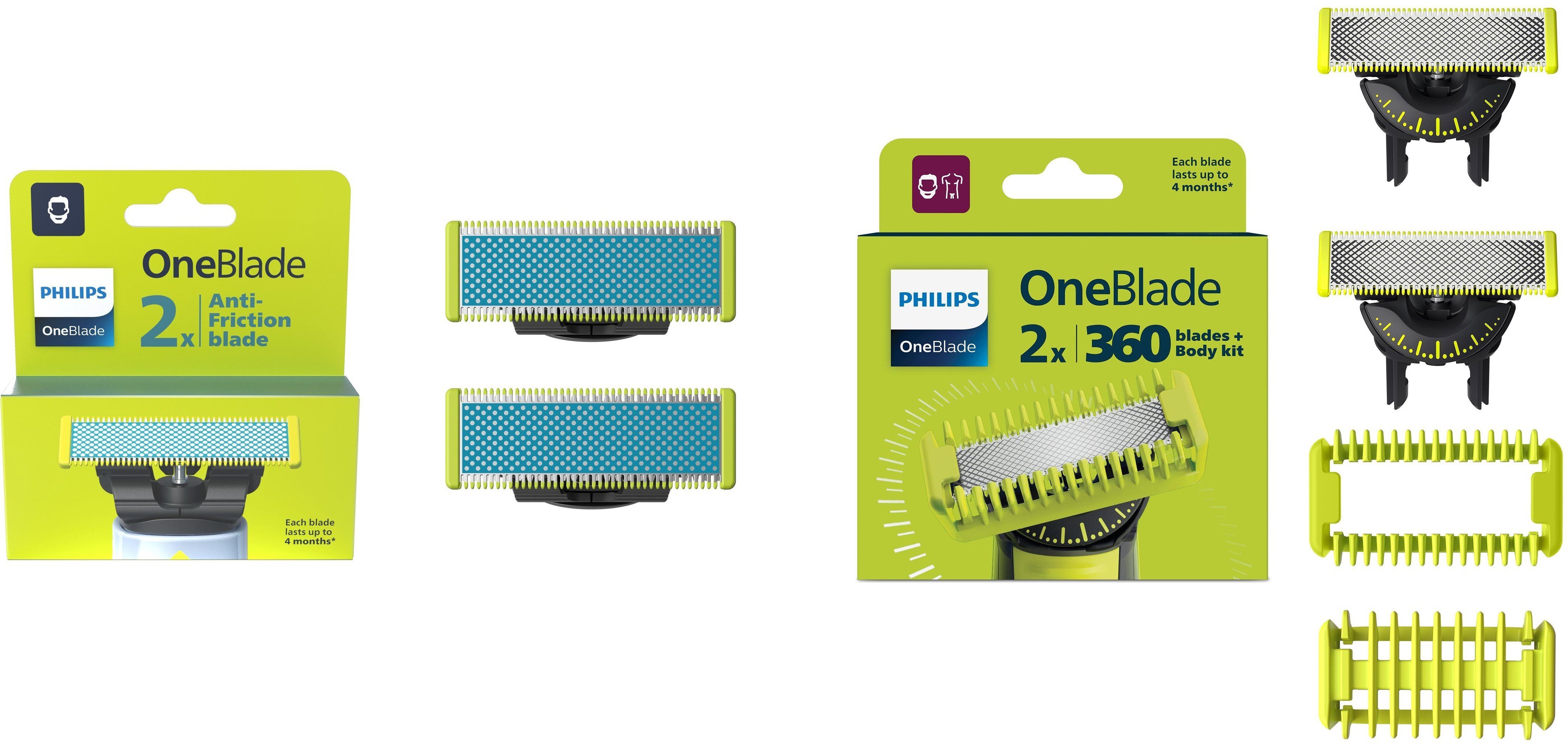 Náhradná hlavica na holiaci strojček – plne kompatibilné so všetkými modelmi Philips OneBlade a Philips OneBlade Pro, vybavené špeciálnou vrstvou mikroperličiek, možno používať aj bez holiacej peny, 2 ks, One Blade 360 2 ks, QP624/50 2 ks Náhradné čepele Philips OneBlade Anti-Friction, 2 ksQP225/50Zastrihávajú, tvarujú a holia akokoľvek dlhé fúzy*Náhradné čepele Anti-Friction sú kompatibilné so všetkými modelmi hybridného zastrihávača