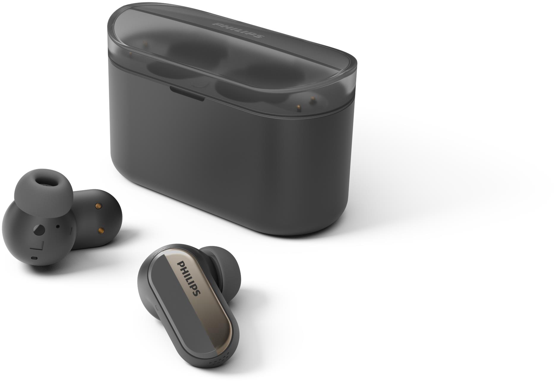 Bezdrôtové slúchadlá – s mikrofónom, True Wireless, štuple, hybridné potlačenie hluku, uzatvorená konštrukcia, Bluetooth 5.3, podpora AAC a SBC, prepínanie skladieb, prijímanie hovorov, s ovládaním hlasitosti, certifikácia IPX4, frekvenčný rozsah 20–20000 Hz, citlivosť 97 dB/mW, impedancia 16 Ohm, menič 10 mm, výdrž batérie až 28 h (7 h+21 h) Bezdrôtové slúchadlá Philips majú kompaktné špuntové prevedenie, ktoré sa zasúva hlbšie do uší a pomáha lepšie potlačiť okolitý ruch. Náušníky ponúkajú tzv. uzavretú konštrukciu, a tak do uší prenikne