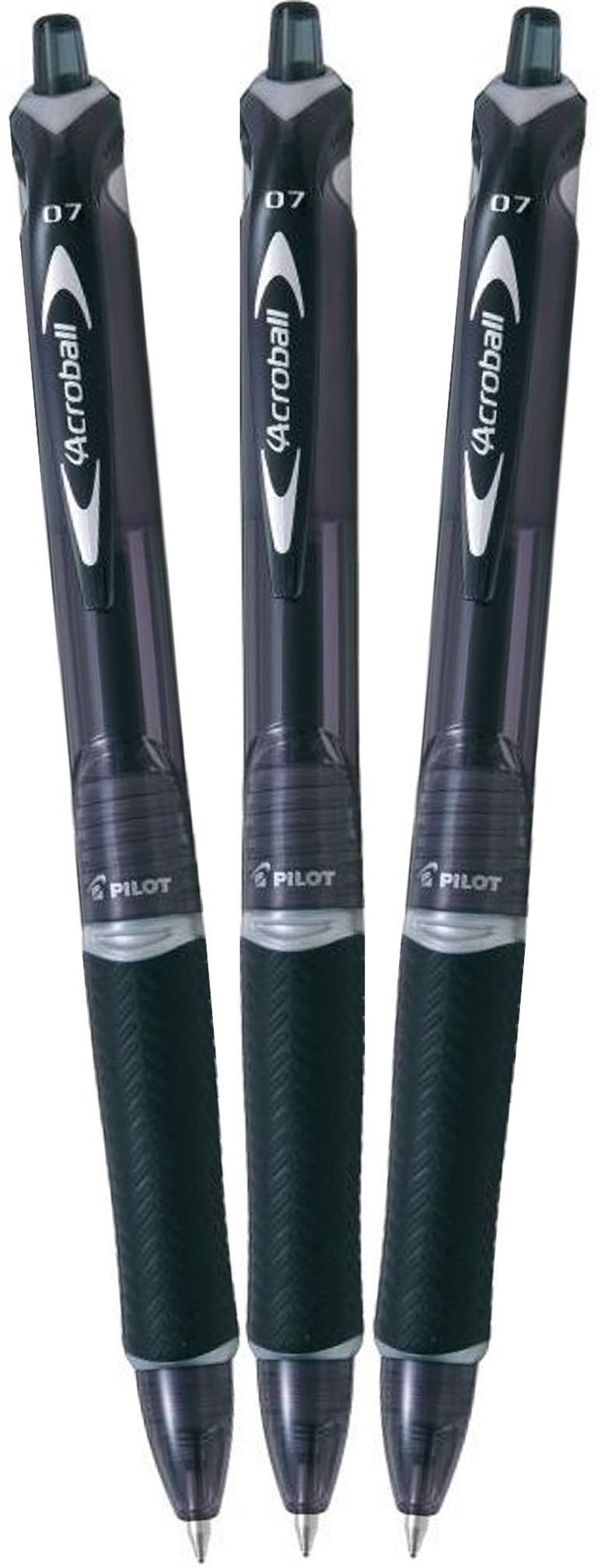 Guľôčkové pero – tekutý atrament, čierna farba náplne, vymeniteľná náplň a pogumované držadlo, pre pravákov a pre ľavákov, 3 kusy v balení, materiál plast, šírka stopy 0,25 mm, šírka hrotu 0,7 mm, s výsuvným hrotom Kľúčové vlastnosti guľôčkového pera PILOT Acroball 0,25 mm čierne – pack 3 ks Guľôčkové pero PILOT patrí medzi stále obľúbené nestarnúce písacie potreby So stláčacím mechanizmom Ideálne pre pravákov a