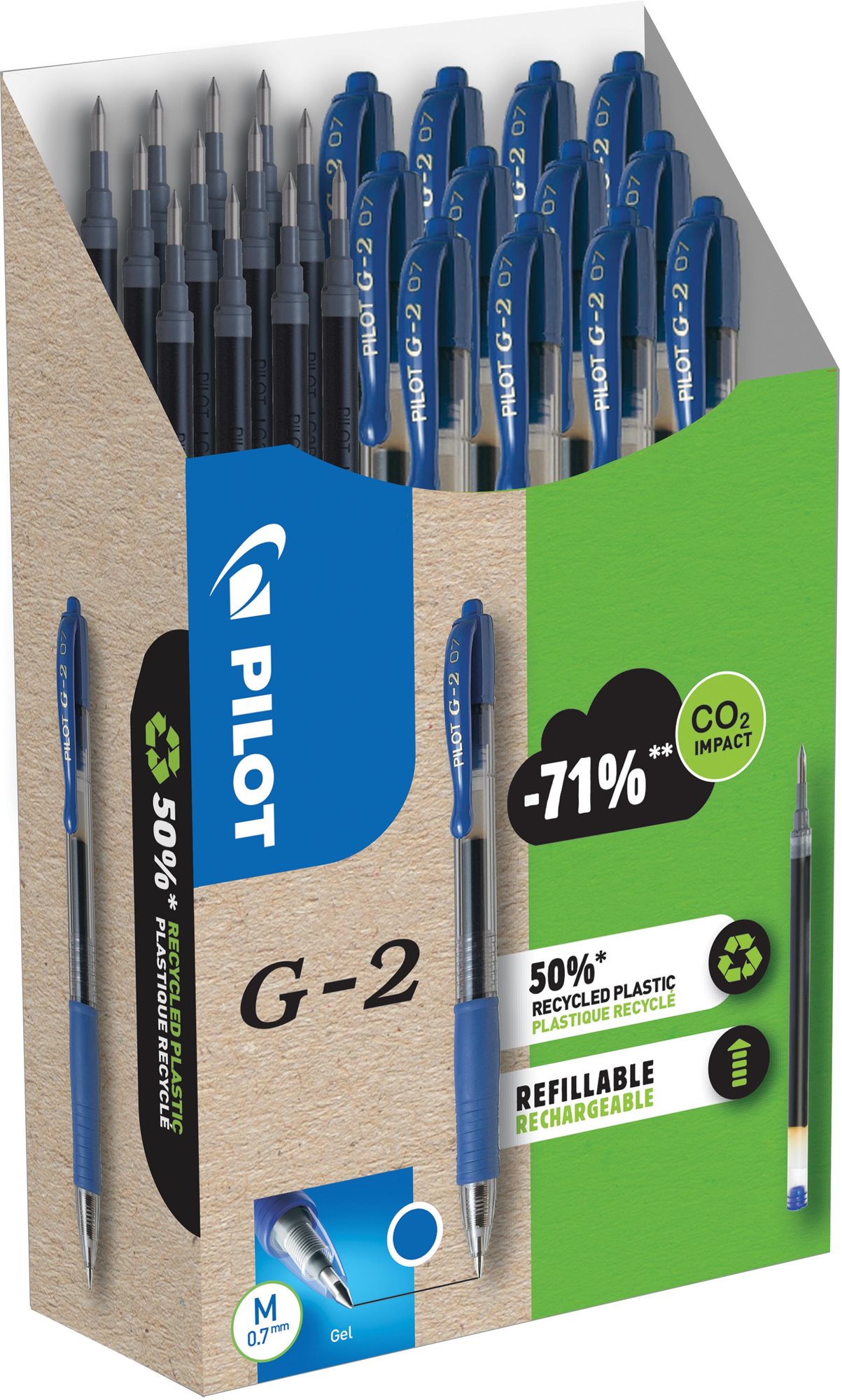 52,31 €PILOT G-2, modrý, 12 kusov + 12 náplní