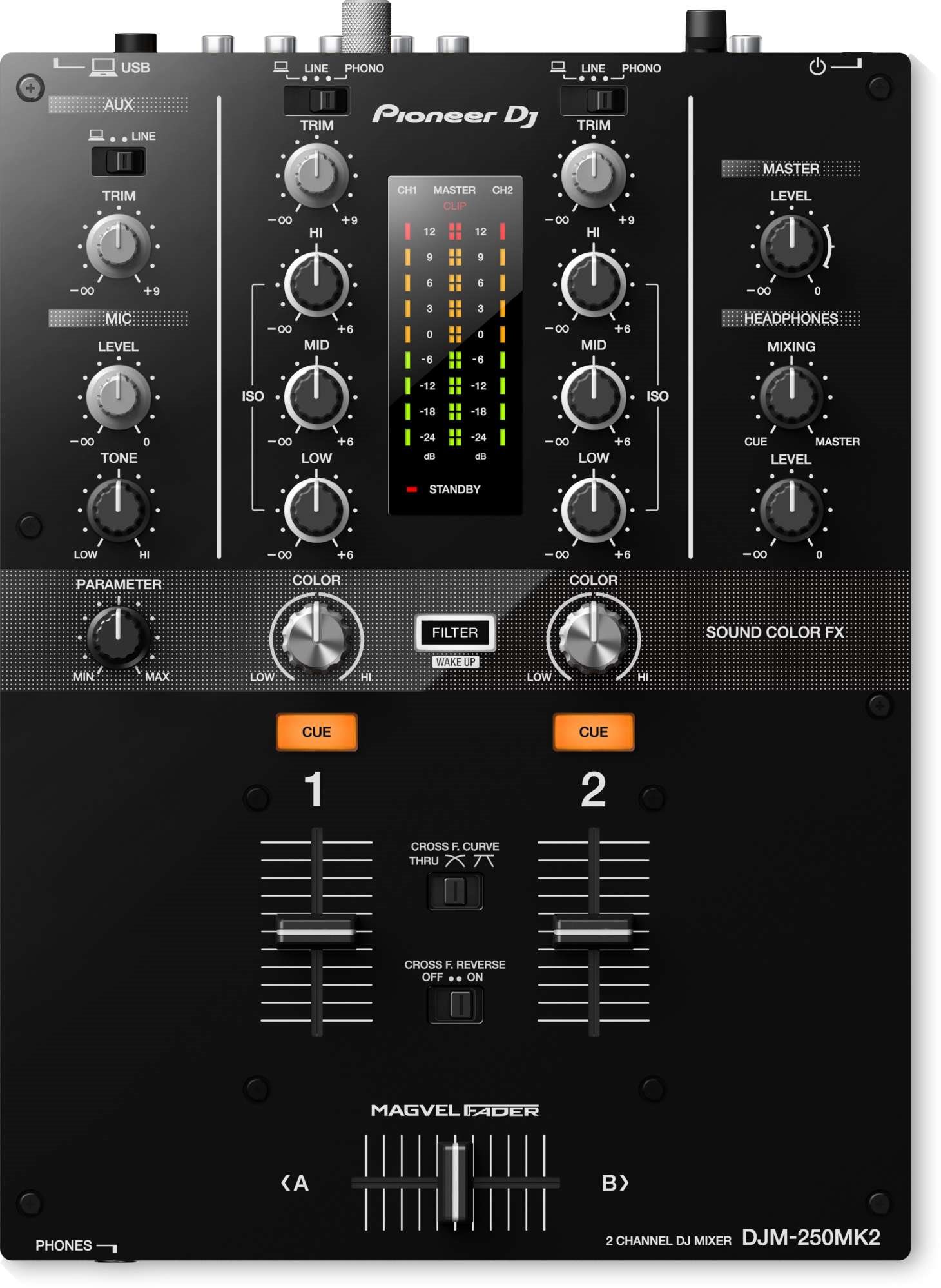 Mixážny pult – analógový s USB výstupom, 2 kanály, vstupy: 1× 6,3 mm Jack, 10× RCA, výstupy: 2× XLR, 2× RCA, 3,5 mm Jack a 6,3 mm Jack slúchadlový výstup, ekvalizér, ťahové potenciometre Plne digitálny 2-kanálový mixážny pult s vlastnou zvukovou kartou sa stane skutočnou bombou v rukách šikovného DJ. Ide o nástroj hodný profíka, ktorý plne využije Magvel Crossfader alebo Sound Co