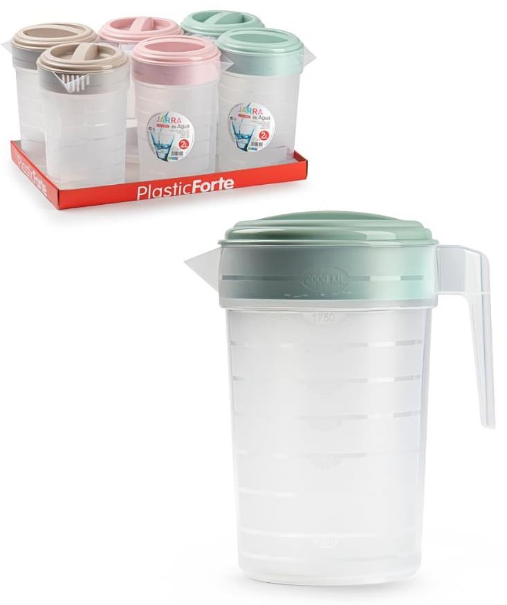 Džbán – na vodu, čaj a mlieko, plastový, s viečkom, materiál uzáveru plast, objem 2000 ml, vhodný do umývačky, chladničky, s ryskami, s uchom, rozmery 23 × 19,5 × 13,7 cm (V׊×D), hmotnosť 0,163 kg Moderne spracovaný džbán na vodu, čaj a mlieko Plastic Forte je kľúčovým prvkom každej kuchyne. Charakteristickým rysom plastového džbánu je jeho nízka hmotnosť, čo sa bude hodiť, ak ho potrebujete ča