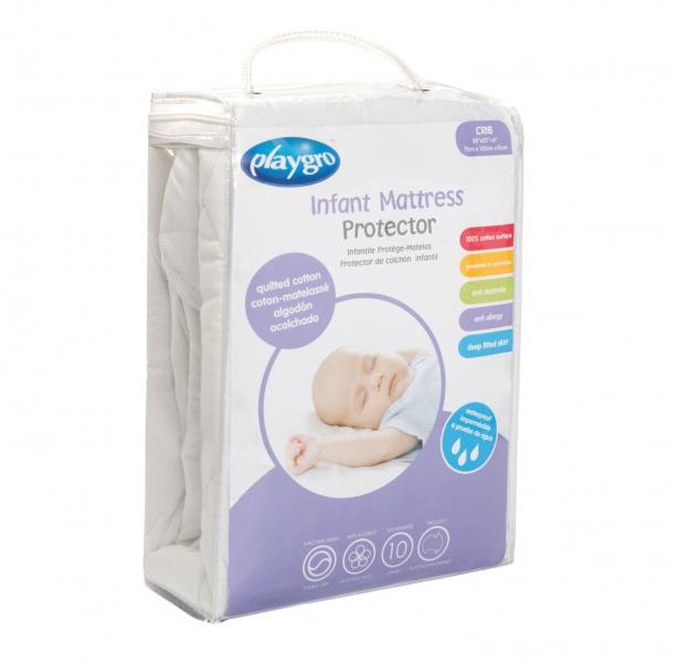 Chránič matraca – rozmer 60 × 120 cm, materiál bavlna Perfektný chránič na detské matrace Playgro ochráni matrac a dieťa, ktoré na nej leží, pred všetkým vlhkom.Perfektný chránič na detské matrace Playgro ochráni matrac a dieťa, ktoré na nej leží, pred v