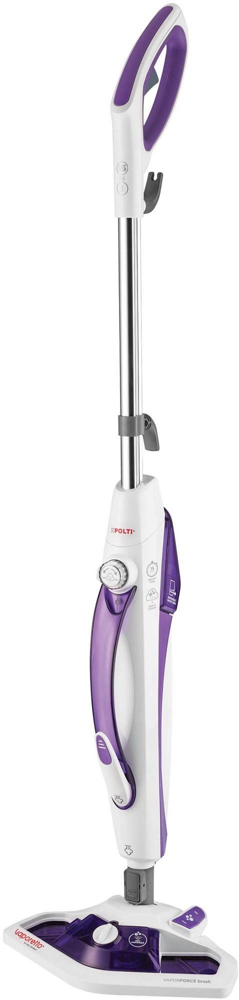 Parný mop určený na umývanie podláh, vhodný na tvrdé podlahy, objem zásobníka na vodu 0,3 l, hmotnosť 2,4 kg, akčný rádius 7,5 m, odnímateľný zásobník na vodu a indikátor pripravenosti pary Parný mop pre domácnosť čistú, lesklú a voňavúParný mop a ručný parný čistič Polti Vaporetto Double poskytuje riešenie na upratovanie všetkých povrchov v domácnosti. Kombináciou týchto dvoch funkcií v