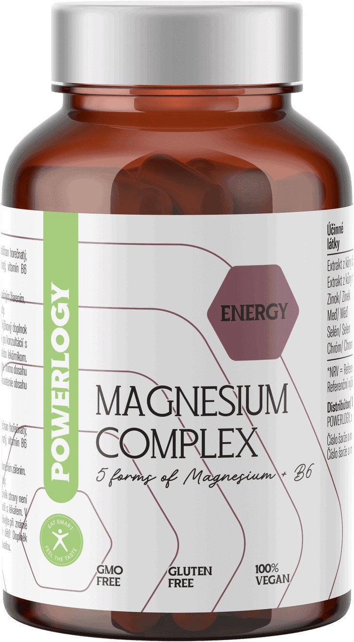 Magnézium – komplex piatich foriem horčíka (300 mg) a vitamínu B6 (2 g) v dennej dávke, bez laktózy, lepku, GMO a živočíšnych zložiek, 90 kapsúl Powerlogy Magnesium Complex90 kapsúlTo najdôležitejšie za 20 sekúndKomplexná synergia piatich funkčných foriem horčíka, doplnená o vitamín B6, navrhnutá podľa aktuálnych výživových odporúčaní na nervo