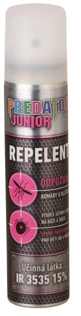 Repelent – proti kliešťom a komárom, vhodný pre deti a prírodný, v spreji, aplikácia na pokožku a na odev, objem 90 ml, vhodný od 0,5 rokov Repelent v spreji PREDATOR Vapo Junior, ktorý prináša účinnú ochranu proti kliešťom a komárom, je navrhnutý špeciálne pre deti od 6 mesiacov a osoby s citlivou pokožkou. Vďaka obsahu šetrnej účinnej l