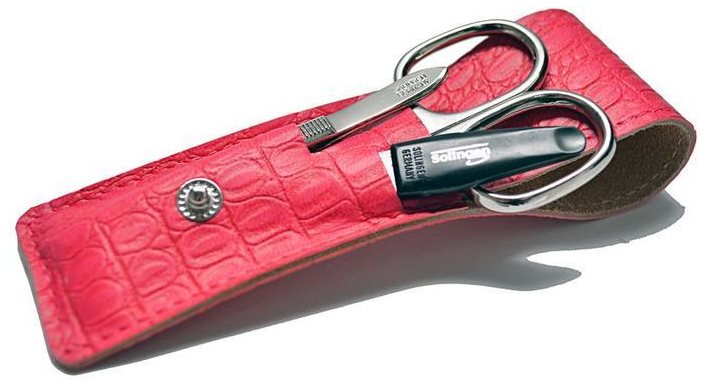 Sada na manikúru – 3 nástroje, materiál nástrojov poniklovaná oceľ, ružová farba puzdra, materiál puzdra koža, s motívom Cestovná súprava na manikúru Premium Line PL 892 v praktickom puzdre ružovej farby s povrchovým vyhotovením imitácie…