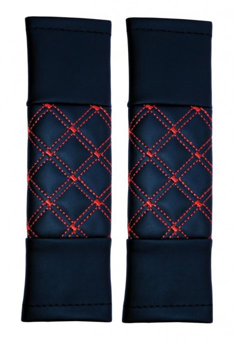 Návleky na bezpečnostné pásy – syntetická koža, čierna a červená farba, 60 × 210 mm