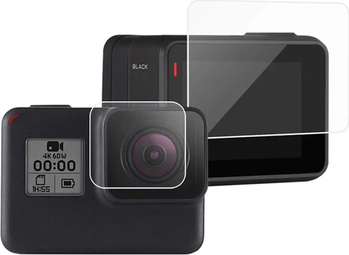 Ochranné sklo – tvrzené sklo, 2 ks v sadě, transparentní Ochranné sklo PrimeGuard pro akční kameru GoPro Hero 6 Black (2017) chrání displej před poškozením. Vyrobeno z tvrzeného skla, slouží jako ochrana před poškrábáním, prachem a nárazy. Sklo m