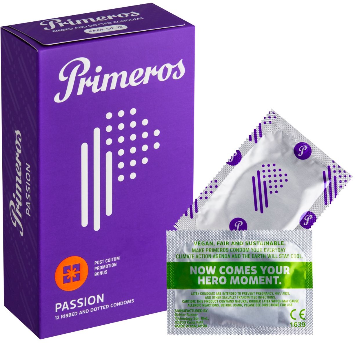 Kondómy – s vrúbkovaním, latexové, bežná lubrikácia, veľkosť 54 × 190 mm (Š×D), hrúbka 0,07 mm, 12 kusov v balení Vychutnajte si skutočnú rozkoš s vrúbkovanými kondómami PRIMEROS PassionNech už sa nachádzate kdekoľvek, vždy buďte pripravení na akciu. Kondómy PRIMEROS Passion sú vybavené stimulačnými vrúbkami a vý