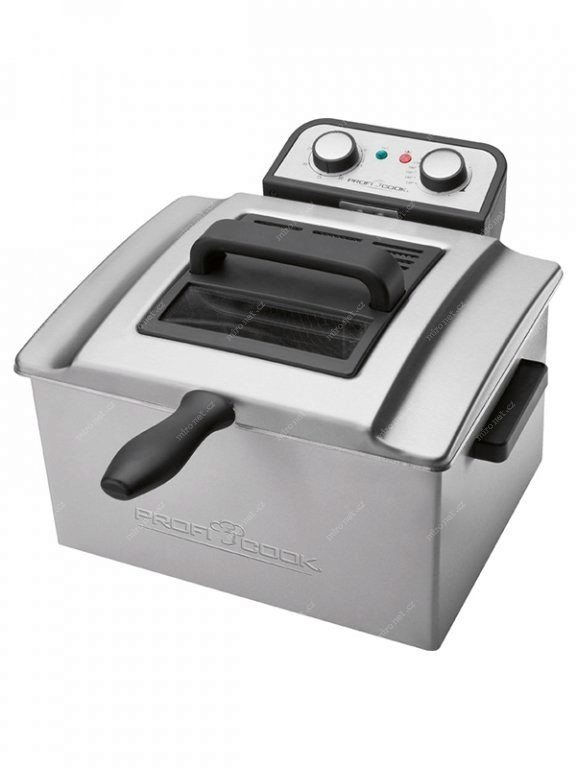 Fritéza na olej – mechanické ovládanie, s ochranou proti prehriatiu, s termostatom, časovač, príkon 3000 W, objem nádoby 5 l, max. náplň oleja 5 l, antikorová nádoba, 2 fritovacie koše, nastaviteľná teplota od 130 do 190 °C, strieborná farba Už nemusíte bežať do fast foodu alebo obchodu, aby ste si dopriali cibuľové krúžky, rezne alebo chrumkavé hranolčeky. Všetky tieto jedlá môžete jednoducho pripraviť doma vďaka fritéze ProfiCook. Nádob