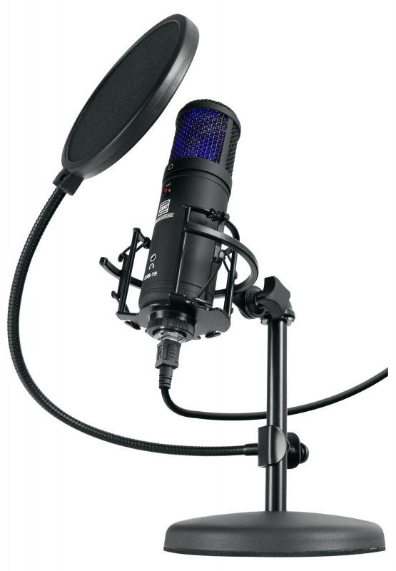 Mikrofón – stolný, dĺžka kábla 0,18 m, kondenzátorový, smerové snímanie, frekvencia od 30 do 18000 Hz, tlačidlo Mute, slúchadlový výstup, obal, pop filter a stojanček v balení, vhodný na Ak natáčate videá, venujete sa spevu alebo ak pracujete so záznamom zvuku, rozhodne by vám nemal chýbať mikrofón. Mikrofón Pronomic USB-19 je kondenzátorový (elektretový). Obľúbený je pri nahrávaní v