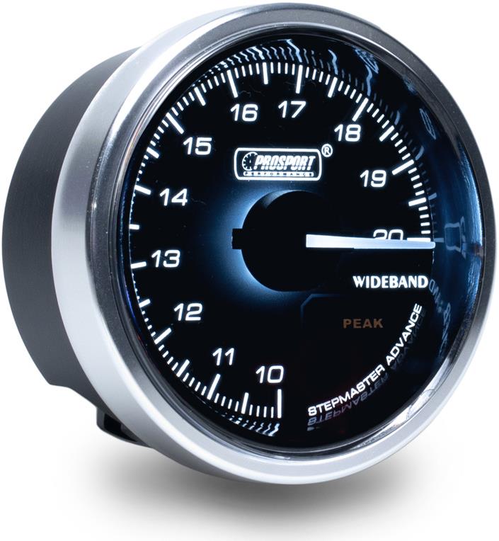 Prídavný budík do auta – s ukazovateľom pomeru vzduchu/paliva, priemer 52 mm Prídavný ukazovateľ bohatosti zmesi Prosport Performance vo verzii so širokopásmovou lambda sondou Bosch – elektronický s jemnou 270° stupnicou s meraným rozsahom 10…