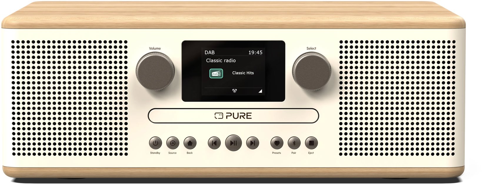 Rádio – klasické, DAB+ a FM tuner disponuje 60 predvoľbami, podpora AAC a mp3, výkon 30 W, vstup USB a AUX, automatické ladenie, ekvalizér a časovač, Bluetooth, k podporovaným médiám patrí CD a USB flash disk, budík, displej a hodiny, diaľkové ovládanie, napájací zdroj a anténa súčasťou, napájanie sieťové, na 2 AAA batérie, klasický dizajn, rozmery 130 × 365 × 290 mm (V׊×H), hmotnosť 3,6 kg, biela a hnedá farba Hlavné prednosti rádia PURE Classic C-D6 biela/dub Rádio Pure disponuje tunerom na príjem DAB+ a FM K obľúbeným funkciám sa zaraďuje automatické ladenie, ekvalizér a časovač Ovládať hlasitosť rádia mo