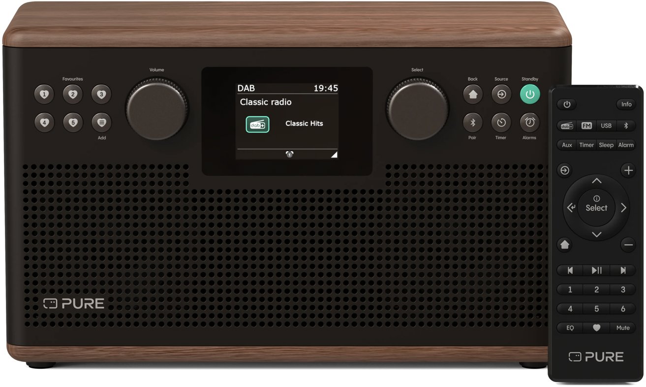 Rádio – klasické, DAB+ a FM tuner disponuje 80 predvoľbami, podpora AAC a mp3, výkon 30 W, vstup USB a AUX, výstup 3,5 mm Jack, automatické ladenie, ekvalizér a časovač, Bluetooth, k podporovaným médiám patrí USB flash disk, budík, displej a hodiny, diaľkové ovládanie, napájací zdroj a anténa súčasťou, napájanie sieťové, klasický dizajn, rozmery 162 × 270 × 110 mm (V׊×H), hmotnosť 1,9 kg, čierna a hnedá farba Hlavné prednosti rádia PURE Classic H6 čierna/orech Rádio Pure je vybavené tunerom na zachytenie DAB+ a FM Medzi obľúbené funkcie patrí automatické ladenie, ekvalizér a časovač K pohodlnému ovládaniu