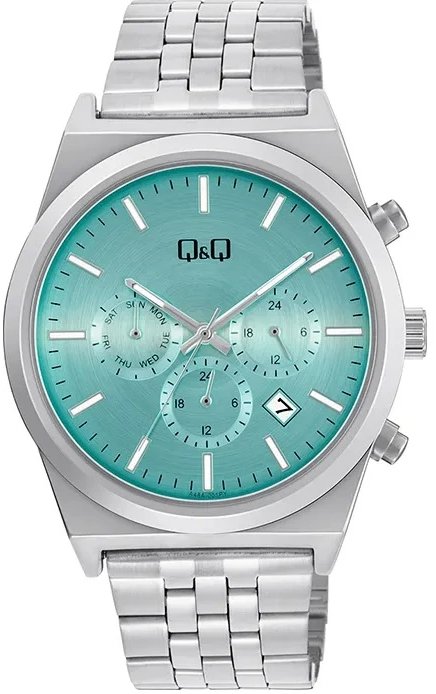 Hodinky pánske – analógové zobrazenie času, strojček quartz, okrúhly ciferník, 24-hodinový režim, dátum a duálny čas, športové, bez číslovania, minerálne sklíčko, vodotesnosť 50 m (5 ATM), materiál puzdra mosadz, strieborná farba puzdra, materiál remienka nehrdzavejúca oceľ, strieborná farba remienka, na maximálny obvod zápästia 17,6 cm, s vymeniteľným remienkom Q&Q A48A-001PY sú prepracované pánske hodinky, ktoré doladia každý outfit do dokonalosti. Ich základom je okrúhly ciferník s priemerom 42 mm. Efektívna Quartz technológia je synonymom výnimočnej presn