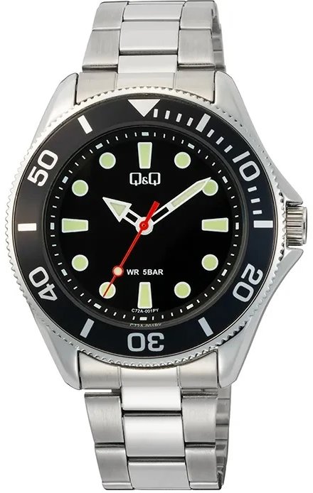 Hodinky pánske – analógové zobrazenie času, strojček quartz, okrúhly ciferník, športové, bez číslovania, minerálne sklíčko, vodotesnosť 50 m (5 ATM), materiál puzdra mosadz, strieborná farba puzdra, materiál remienka nehrdzavejúca oceľ, strieborná farba remienka, na maximálny obvod zápästia 21,5 cm, s vymeniteľným remienkom Q&Q C72A-001PY sú pekné pánske hodinky, ktoré už nikdy nebudete chcieť vymeniť za iné. Ich základom je okrúhly ciferník s veľkosťou 41 mm. Strojček Quartz je synonymom vysokej spoľahlivosti a dlhej v