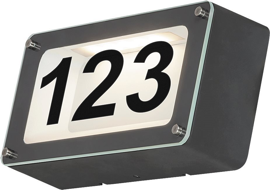 Lampa na stenu – LED, svetelný tok 480 lm, výška 12,2 cm, šírka 24,2 cm, materiál: kov a plast, IP54 Nástenná vonkajšia lampa RABALUX Hannover 8747 nie je len obyčajné svietidlo. Jej panel, ktorý svieti v tóne denného svetla je určený na samolepky s vašim popisným číslom. Aj v noci pri rozsvietení bu