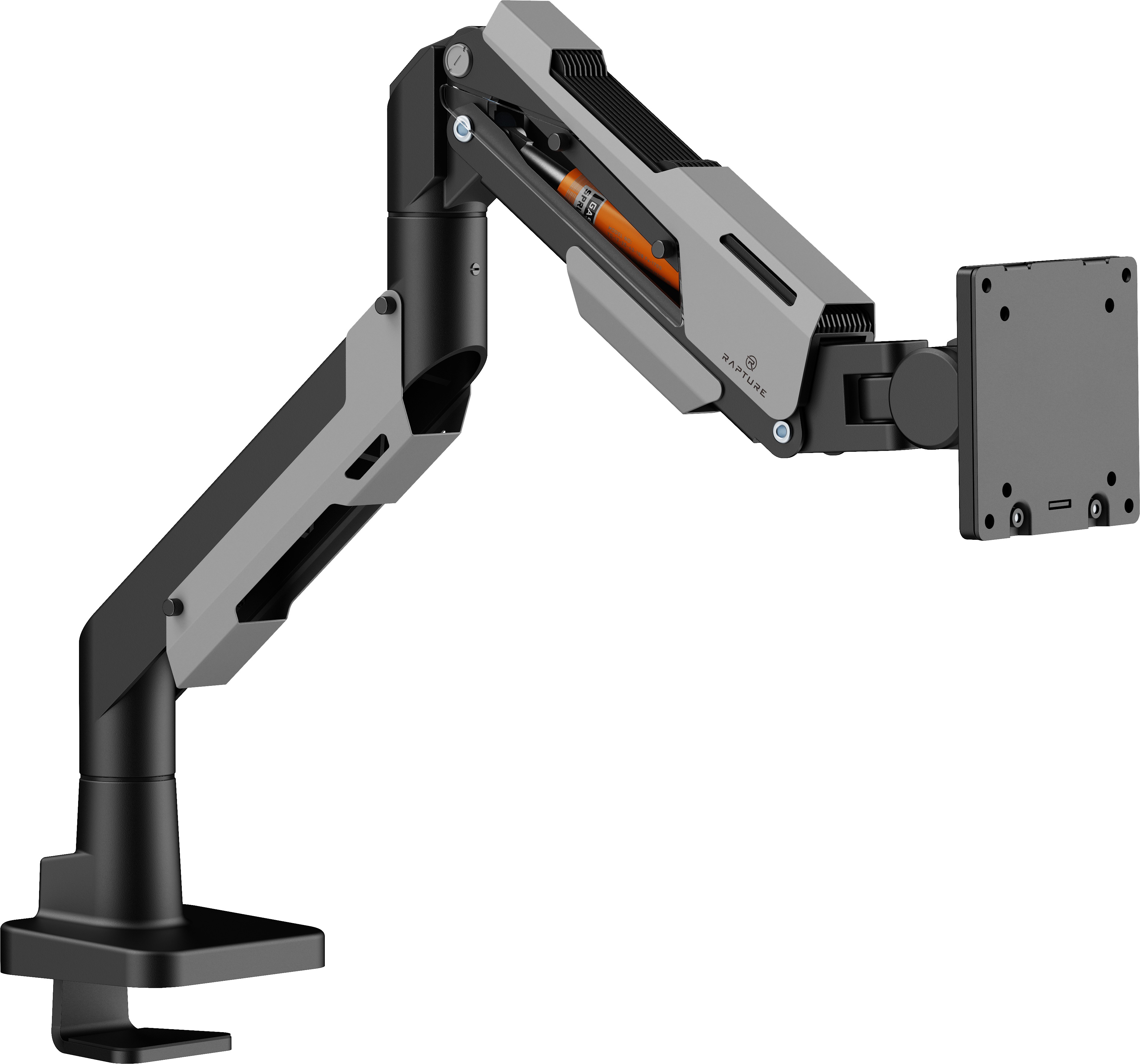 Držiak na monitor – pre monitor 24″ až 57″, vhodný pre rovné aj prehnuté monitory či TV, maximálna nosnosť 30 kg, rýchloupínacia VESA doska, inštalácia na hranu stola (12 – 45 mm) alebo priechodku doskou (12 – 60 mm), monitor je možné nakláňať (+70° až -45°), otáčať (+90° až -90°), rotovať (+90° až -90°), pivot (použitie monitora na výšku), integrovaná zarážka otáčania, nastaviteľná plynová pružina, VESA 75×75, 100×100, 100×200, 200×100 a 200×200 mm, systém na usporiadanie káblov, montážna sada v balení DRŽIAK NA MONITOR RAPTURE OBLIVION SXSila, precíznosť a plynulosť v jednom!Držiak Rapture OBLIVION SX je určený na monitory s uhlopriečkou 24 až 57″, vrátane ohnutých modelov. Inštalácie veľkej obrazo