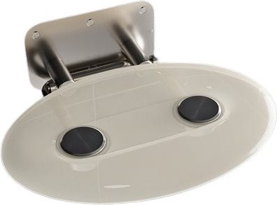 Sedadlo do sprchy – sklopné, nástenné, oválne, nosnosť 150 kg, materiál konštrukcie chróm, materiál sedadla plast, rozmery 41 × 35 cm (Š×H), biela farba