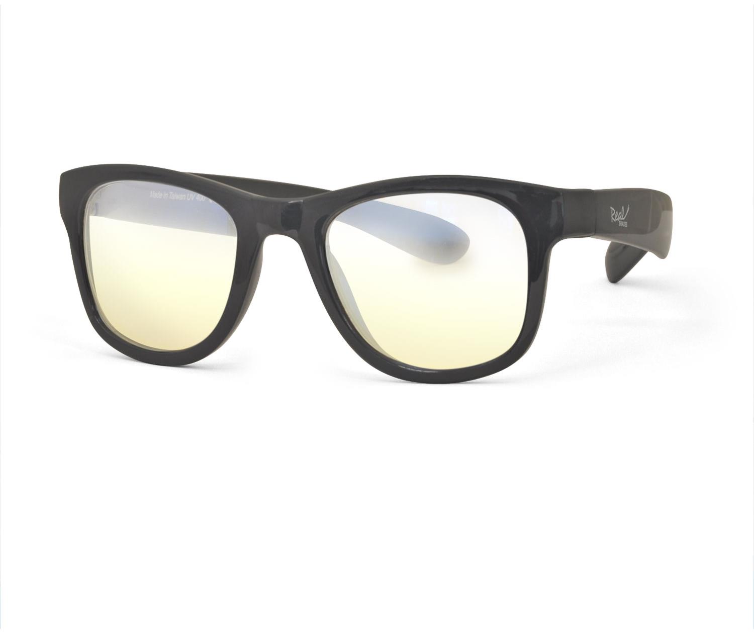 Okuliare na počítač – unisex, voľnočasové, ochrana proti modrému svetlu 65 %, štvorcové, materiál rámu: plastový, čierna farba rámu, UV ochrana UV400, UVA a UVB Detské okuliare na počítač Real SHADES dodávajú 65 % ochranu proti modrému svetlu a tým znižujú riziko únavy očí a poškodenia zraku pri dlhom používaní elektronických zariadení. Plastový rám je nielen