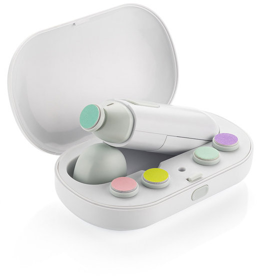 Brúska na nechty – na manikúru, na prírodné nechty, vhodná na domáce použitie, napájanie jednorazovými batériami, 2 rýchlosti, tichý chod, biela farba, batéria, cestovný obal, návod a 5 nadstavcov v balení Elektrický pilník REER BabyCare je ideálny na starostlivosť o jemné nechtíky dojčiat, batoliat i starších detí. Zabráni nepríjemnému poškriabaniu dlhými nechtami alebo naopak ich zarastaniu. Pýši sa t