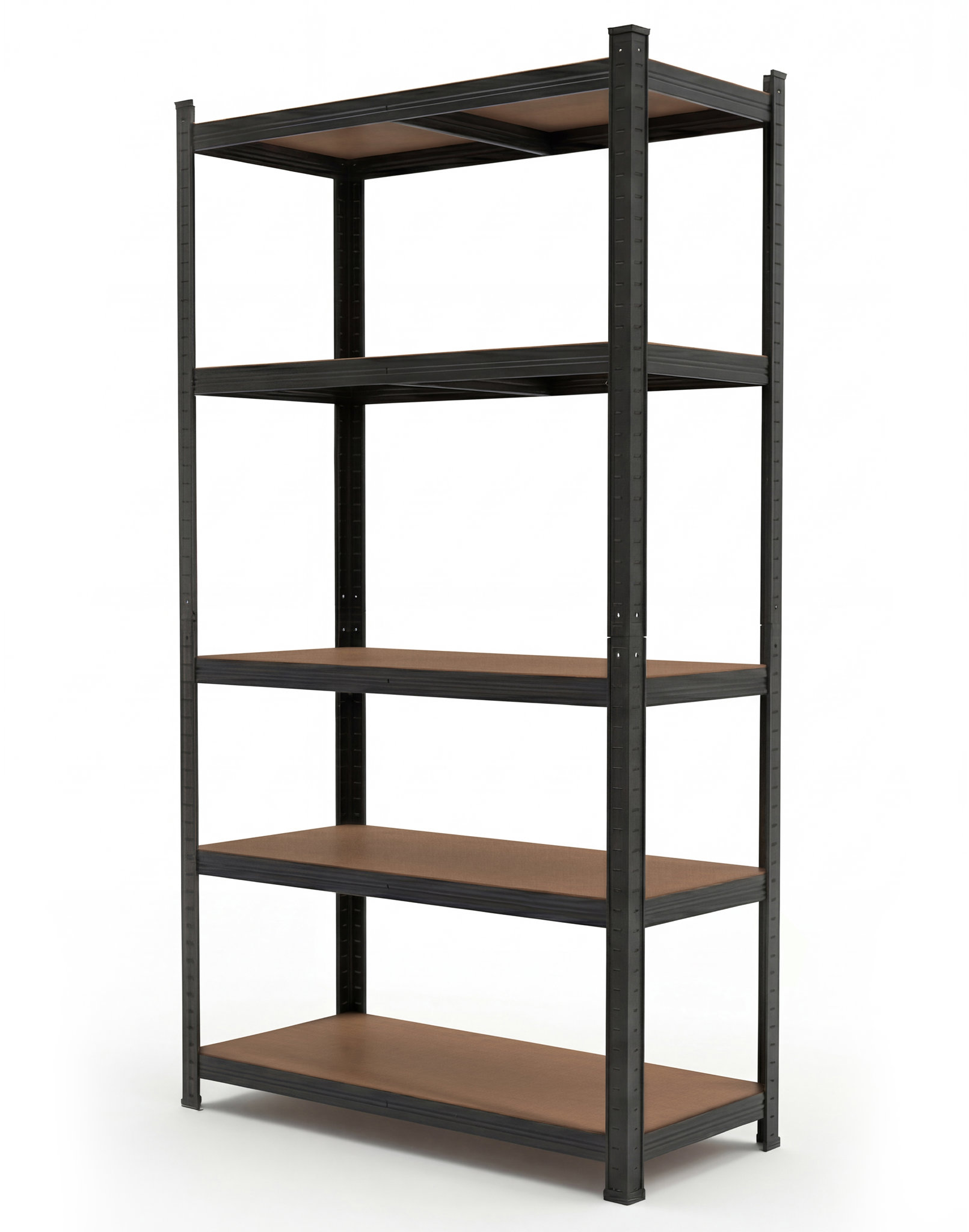 Regál – kovový, policový, do garáže a dielne, 5 políc, nosnosť police 150 kg, hnedá farba políc, celková nosnosť 750 kg, bezskrutkový, čierna farba konštrukcie, rozmery 180 × 90 × 40 cm (V׊×H) Využili by…