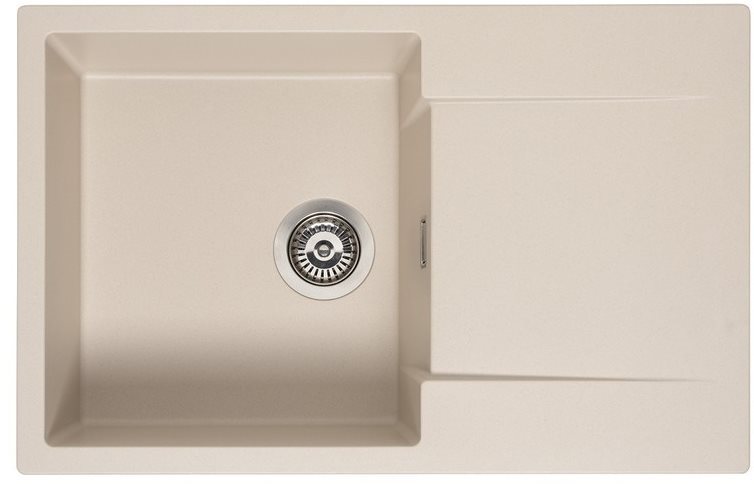 Granitový drez – obdĺžnikový tvar, s odkvapom, granitový materiál, obojstranná orientácia drezu, sitkový výpust, béžová farba, celkové rozmery drezu: 76 cm × 43,5 cm × 20 cm (D׊×H), rozmery vane: 37,5 × 40 × 18…
