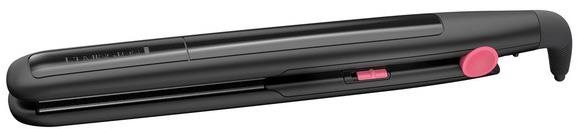 Žehlička na vlasy – keramický povrch doštičiek, šírka doštičiek 25 mm, 1 teplotný stupeň, doba nahriatia 30 s, automatické vypnutie, svetelná signalizácia, bez displeja, príkon 38 W, dĺžka prívodného kábla 1,8 m, čierna farba, bezpečnostný…
