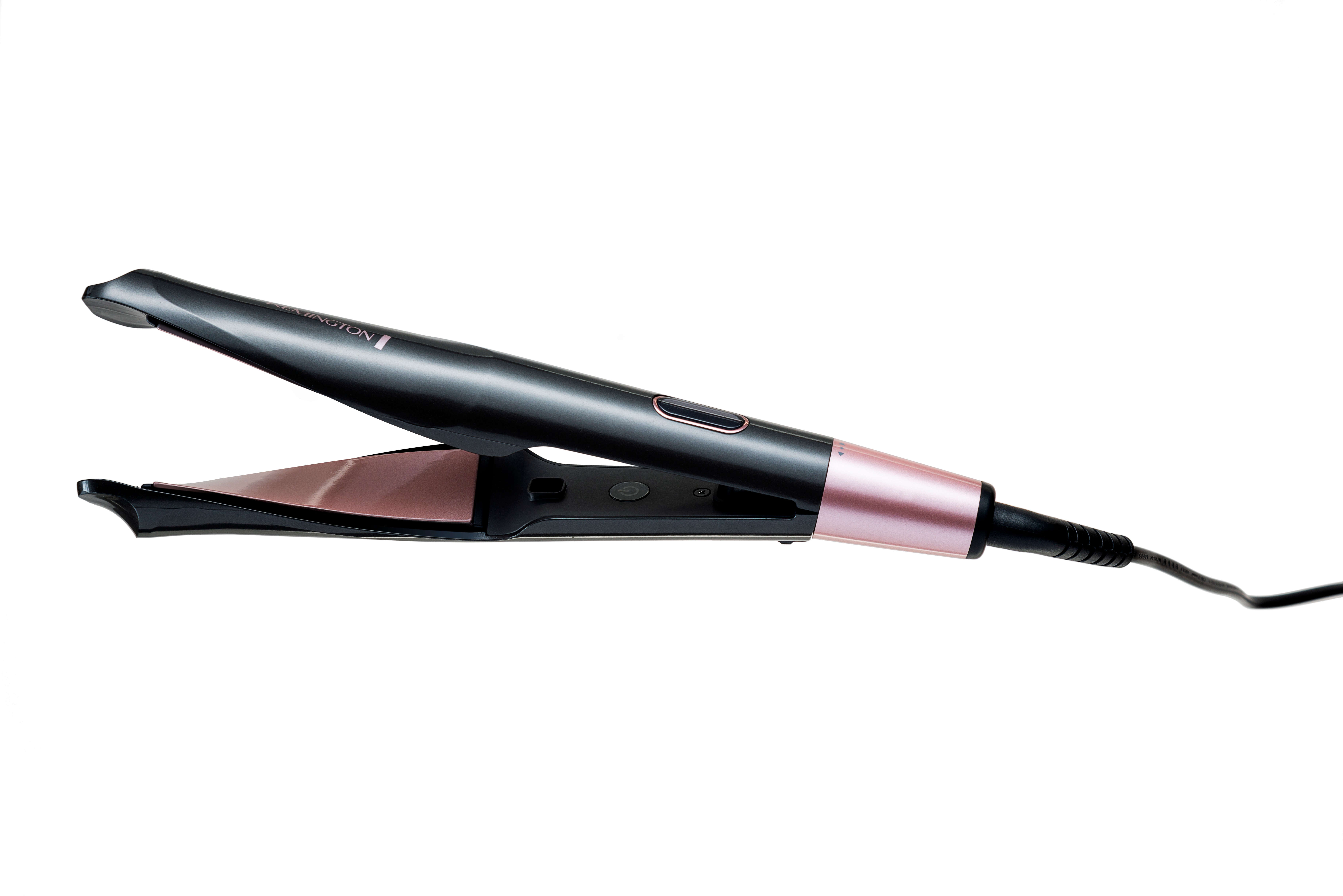 Žehlička na vlasy – keramický, turmalínový povrch doštičiek, šírka doštičiek 25 mm, 5 teplotných stupňov, rozsah teploty od 150 do 230 °C, doba nahriatia 30 s, rýchle nahrievanie, automatické vypnutie, ionizácia, regulácia teploty, svetelná signalizácia, vhodná aj na tvorbu vĺn, podsvietený displej, príkon 47 W, dĺžka prívodného kábla 1,8 m, čierna a ružová farba, bezpečnostný zámok a flexibilný kábel, sieťové napájanie Nie je vyplnený Alternatívny text k fotografii! Remington S6606 Curl & Straight ConfidenceŽehlička na vlasy Remington S6606 Curl & Straight Confidence je vybavená digitálnym displejom, vďaka k