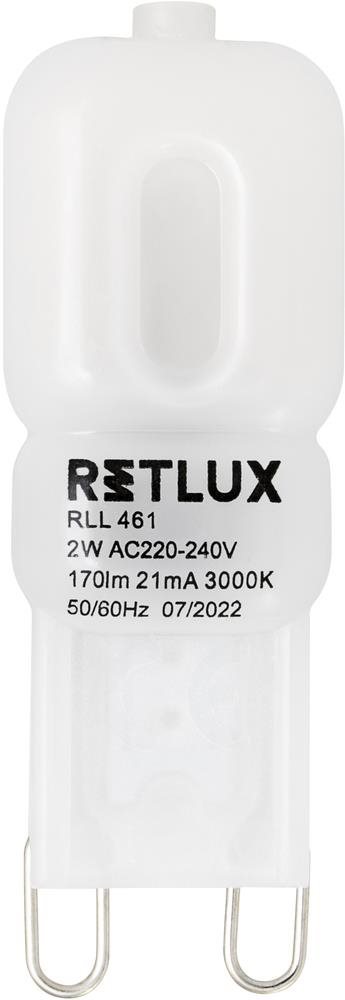 LED žiarovka – pätica G9, energetický štítok F, príkon 2 W, 230 V, svetelný tok 170 lm, index podania farieb (CRI) 80 Ra, priemer 1,1 cm, životnosť 15000 h LED žiarovka Retlux je energeticky efektívna a má veľmi dlhú životnosť až 15000 h. Produkuje minimálne množstvo tepelnej energie v porovnaní s tradičnými žiarovkami, a navyše sa ihneď po zapnutí rozsv