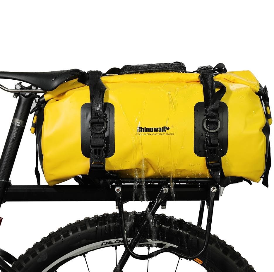 Taška na bicykel – na zadný nosič, objem 20 l, vodotesná, vhodná na bikepacking, vo výbave popruh, vnútorné vrecko, popruh cez rameno, rozmery 28 × 46 × 23 cm (V׊×H), hmotnosť 0,64 kg, žltá farba Rhinowalk RK19660 je vodotesná taška určená na prichytenie na zadný nosič bicykla, navrhnutá s ohľadom na každodenné dochádzanie aj viacdenné výlety v náročnejších podmienkach. Vďaka konštrukcii z kom