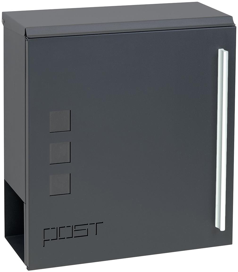 Poštová schránka – vyhotovenie vnútorné a vonkajšie, nástenná, oceľová, s držiakom na noviny, montážnou súpravou v balení, uzamykateľnými dvierkami, rozmery 34,5 × 31 × 11,5 cm (V׊×H), antracitová farba Štýlová poštová schránka na listy Richter…