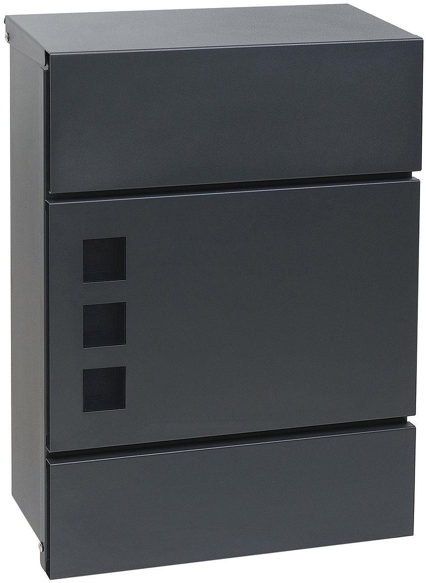 Poštová schránka – vyhotovenie vnútorné a vonkajšie, nástenná, oceľová, s montážnou súpravou v balení, okienkom, uzamykateľnými dvierkami, rozmery 37 × 27 × 11 cm (V׊×H), antracitová farba Originálna poštová schránka na listy Richter Czech na vonkajšie aj vnútorné použitie si vás získa svojím vzhľadom aj eleganciou. Jej nástenné vyhotovenie je ideálne na pripevnenie na stenu či plot. Za