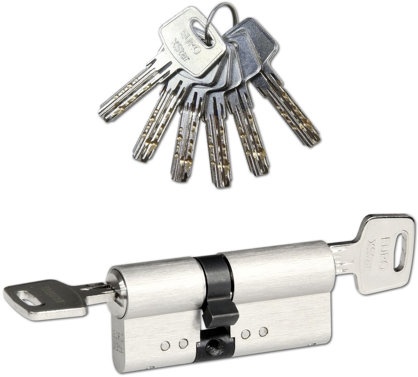 Cylindrická vložka – rozmery 30/35, bezpečnostná trieda RC4, obojstranná, prestupová spojka, odolná proti odvŕtaniu, bumpingu, rozlomeniu a planžetovaniu, identifikačná karta, 6 kľúčov v balení Cylindrická vložka Richter Czech EURO Xstar EXR.30/35.BSZ.NI je certifikovaná v bezpečnostnej triede RC4 podľa ČSN EN 1627:2012. Jej výhodou je, že ju možno odomknúť pri zasunutom kľúči z druhej stran